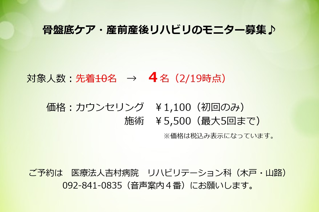 尿漏れや産前産後のリハビリに関してお悩みの方はお気軽にご相談ください。