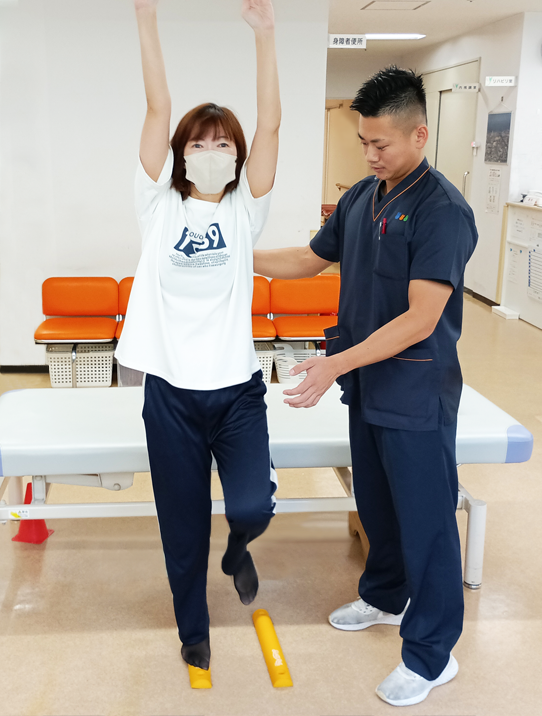 ここではセラピストが徒手を使い、負荷をかけたり、反応速度を高めたりします。その後、「関節を安定させる筋肉」と「表層にある大きな筋肉」を鍛えて、バランスを整えていきます。